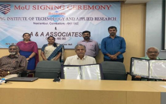 PSG iTech, COIMBATORE has signed a Memorandum of Understanding (MoU) with A & A ASSOCIATES, Consulting Services UK on 5th June 2023 for collaborative research between the two organizations in the broader area of Clean Water and Clean Environment.