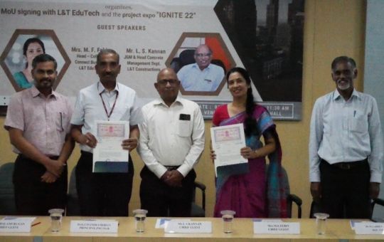 The Department of Civil Engineering in association with the Association of Consulting Civil Engineers (India) organized the program "MoU signing with L&T Edu Tech" on 1st June (Wednesday). Dr. G Chandramohan, Principal, PSG iTech welcomed the gathering.